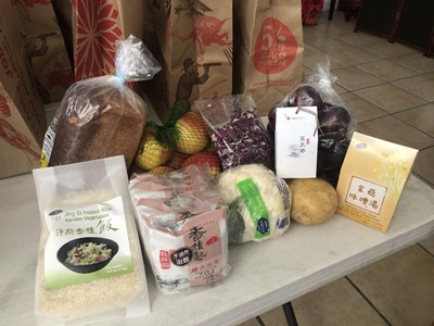 6月的北加州氣溫異常炎熱,奧克蘭志工們在這個月的關懷蔬果袋中,裝入了遠渡重洋,來自臺灣的靜思香積飯與香積麵;每一份飯,每一包麵,都承載著證嚴上人與靜思精舍師父們的無盡慈悲與無限關懷。