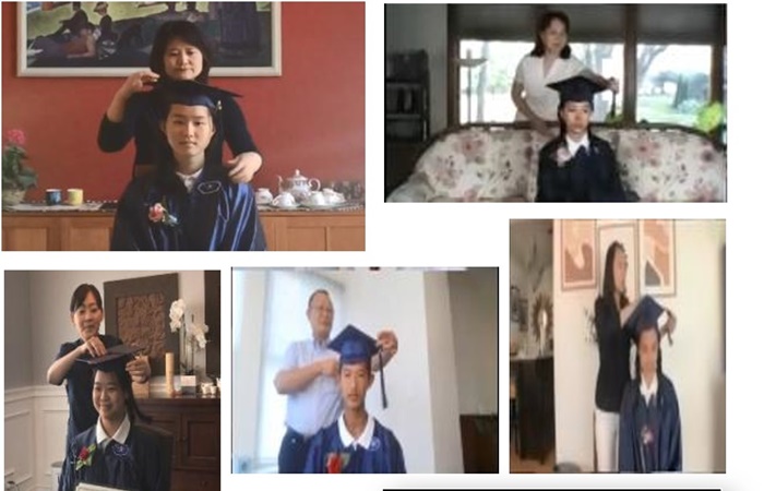「我在二年級的時候加入人文學校,和同學一起參與學校活動、舞龍、做湯圓還有很多難忘的美好回憶。在慈濟得到的比預期的多。感恩老師、同學和家人幫忙完成這個旅程。」鄭靖嫙同學也分享了他在校園裡珍貴的回憶,這次透過網路舉辦的畢典,更是正巧讓他遠在新加坡的父親鄭絖桉能同步參與:「因為疫情的關係,本來很惋惜無法回美參加畢業典禮。沒想到這線上畢業典禮,竟然辦得那麼好,一點也不輸於過往的,傳統式畢業典禮。」