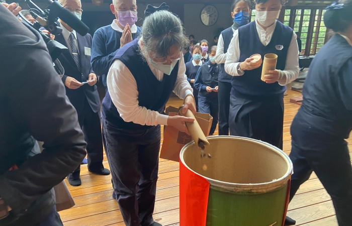 最後,大家依序將特地帶來的小竹筒,匯入大竹筒,響應土耳其震災援助,銅板聲鏗鏘清脆,聲聲祝福直逹天聽。