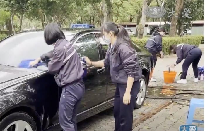 不論是機車、小轎車,或是休旅車,學生們彎下腰,提供純手工洗車、洗輪框、打水蠟,花時間花體力,灑在身上的水是冰的,心卻是溫暖的。慈科大慈青社長郭佳文說:「因為最近其實天氣滿冷的,我們在洗車的時候,水其實很冰的,我們有特地準備暖暖包給來洗車的同學。」