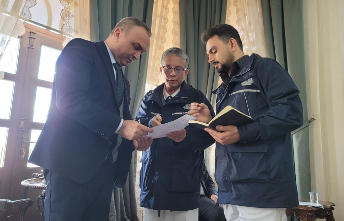 賑災團抵達伊斯坦堡之後,即在當地成立「緊急救災總指揮中心」,積極尋求發放管道,2月12日就在阿里前副省長的協助下,前往首都安卡拉拜會了土耳其副總統歐克台,商討後續的援助合作。熊副不諱言,一開始土耳其政府也是希望慈濟將援助的善款和物資捐給政府由他們統籌來運用,「但我們真誠地表達我們對發放的堅持,一定要親手布施而且是有感的發放,幫助真正有需要的人。」