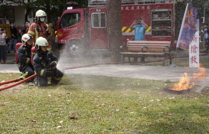 演練成員也包含瓦斯公司、消防隊、救護車、臺電、清潔隊,一同參與實地防護救災。期望透過模擬演練增加社區災害應變能力,減少災害損失。