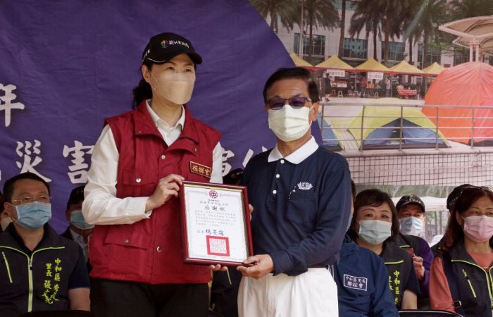 擔任副指揮官的中和區副區長薛景忠,從早上預演時就持續為各個單位指導、提供意見,他說:「中和區每年會舉辦一次防災演練,一方面讓演練單位對救災熟悉,災害來時能做好救災工作;二方面讓里長觀摩,讓防救災的觀念可以被更多人知道。」