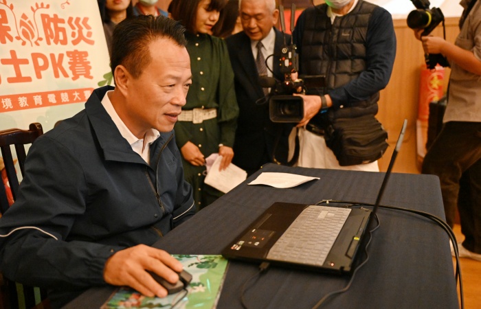 初賽前,由翁章梁縣長率先體驗答題;縣長專注著螢幕連續答對3道題目,讓全場報以熱烈的掌聲。他致詞:「現在全球化的世界,人跟人的關係愈來愈密切,工業革命以後,節能減碳、地球降溫的問題,已經變成全世界共同的課題。非常感謝很多單位,包括企業界的配合,讓我們的小朋友,能夠透過遊戲當中,建立保護地球的觀念。」