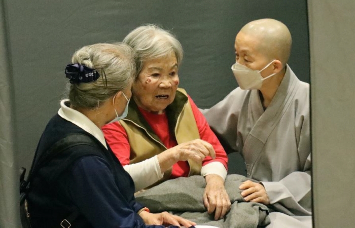 心繫鄉親回不了家 靜思精舍師父前往安置中心送祝福