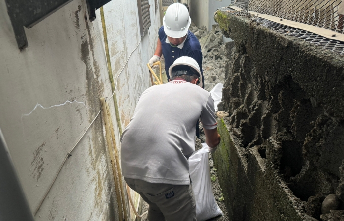 為了讓工班可以順利修繕住宅,志工也貼心地先為無力整理家園的災民整理環境,讓工班好做事。