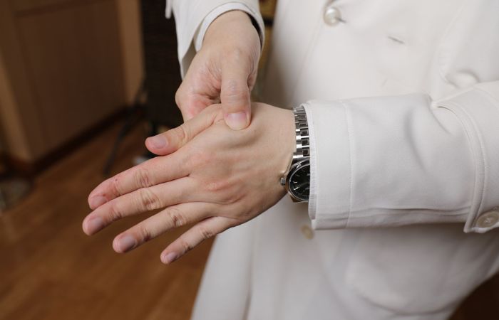 首先是位於雙手虎口處的合谷穴,把手的拇指食指合攏,在兩指間肌肉最高凸起的地方就是合谷穴。合谷穴可以舒緩頭部上絕大部分的五官症狀問題,還有很好的止痛效果,可以提升人體對疼痛的耐受力。