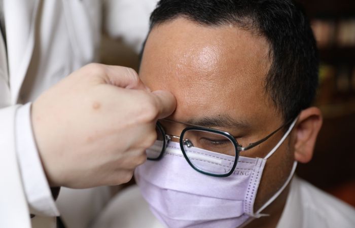 第二個穴位是位於臉上雙眉之間眉心位置的印堂穴。按摩印堂穴有明目、醒腦、開竅的作用,常用來舒緩頭痛、頭暈、失眠、神經衰弱等症狀。