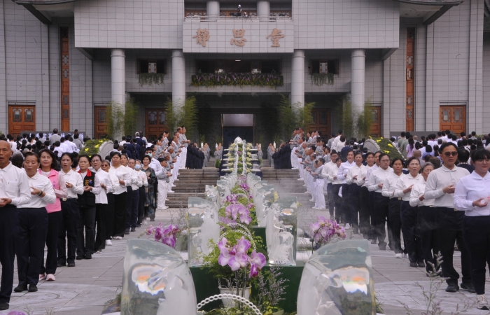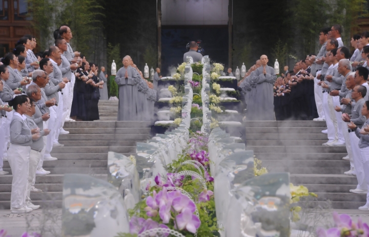 今年浴佛加入無量義經德性品梵唄,浴佛意義殊勝非凡。「智恬情泊慮凝靜 意滅識亡心亦寂」,浴佛滌除煩惱無明,祈願眾人善念匯聚,弘法利生,社會祥和;素食護生,天下無災。