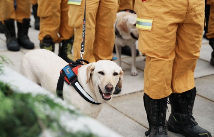 在浴佛大典儀式結束後,搜救犬Hero及Fancy與花蓮警消也一起接受慈濟證嚴上人的祝福,上人還特別送福慧紅包給兩隻搜救犬,表達對搜救犬協助災後搜救的感恩與祝福。
