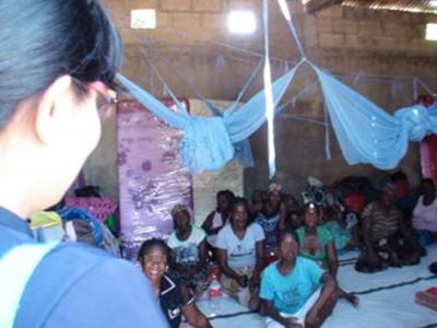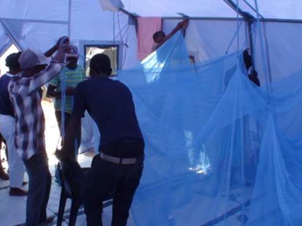 當地有瘧疾疫情,儘管得到瘧疾的民眾馬上就醫就沒有危險,但是目前公立醫院完全沒有庫存的瘧疾藥,而藥房則售價高,一般人付不起,因此杜絕蚊子侵擾的蚊帳顯得特別重要。看到掛滿了蚊帳,讓災民免受瘧疾之苦,慈濟志工蔡岱霖向災民說:「看到你們每個角落都有蚊帳,我們晚上也睡得安心了。」