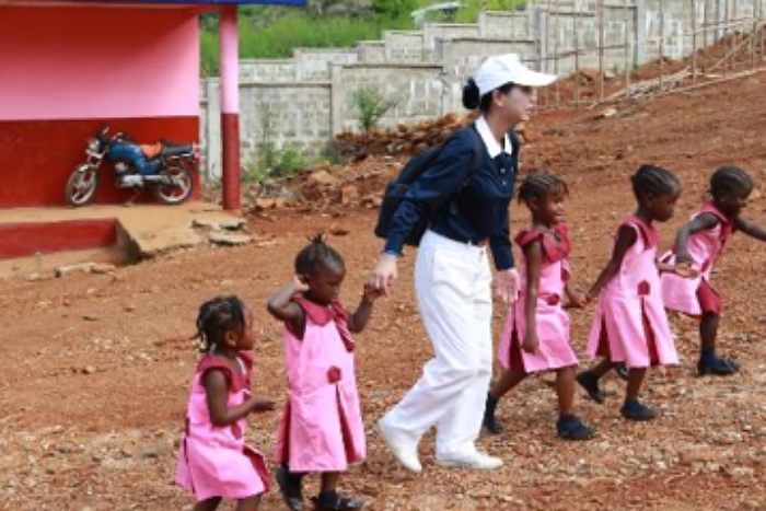學校的位置,稍有斜坡,鄭順賢醫師看到就讀一年級的Yatu Koroma 因為行動不方便,走上教室很吃力,主動進一步了解。得知她沒有爸爸,是媽媽帶大,因為髖關節有問題,從小就無法正常行走。但因為家貧沒錢醫治,只能拖著無力的雙腳走路,為了上學,她必須每天來回走二里路。