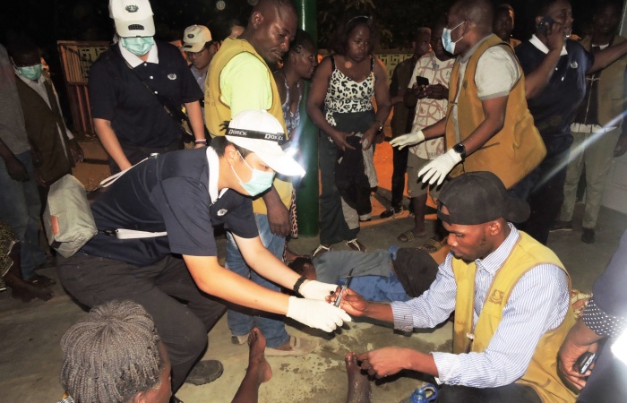 混亂中,慈濟志工蔡岱霖調派慈濟車輛,將傷重傷患送往貝拉市醫院救治,輕傷者就地送往這間醫院,但入院後才得知院內連紗布、食鹽水等備品也缺,志工趕忙聯繫已打烊的超商,拜託店家讓志工採買,才得以將傷患傷口包紮完畢。
